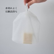 石鹸をポケットに入れて泡立てと保管ができ、吊るすだけで石鹸長持ち。
